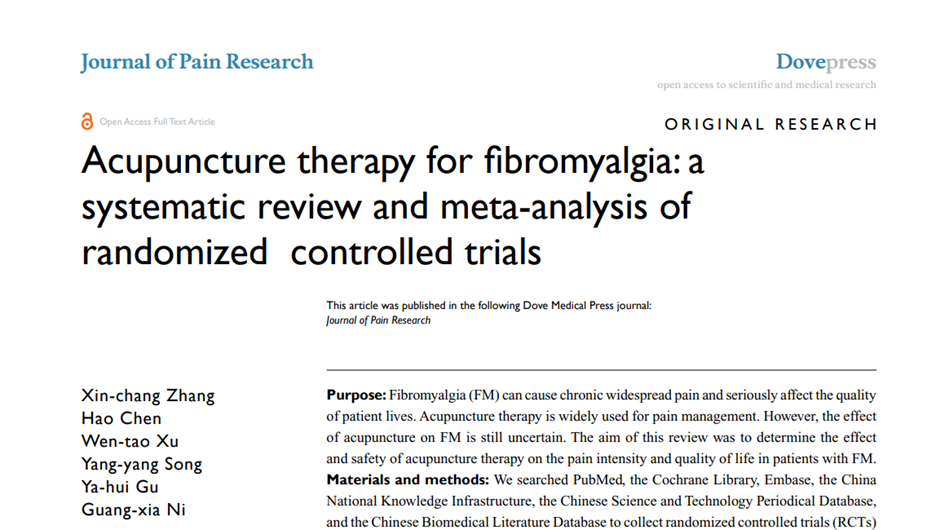 Conclusion: Acupuncture therapy is an effective and safe treatment for patients with fibromyalgia, and this treatment can be recommended for the management of fibromyalgia.
